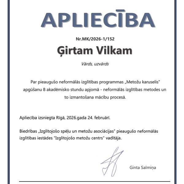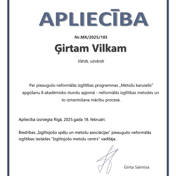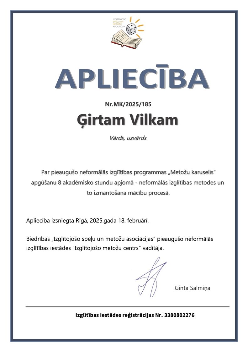 Ģirts Vilks - Kansiterapijas spieciālista sertifikāts